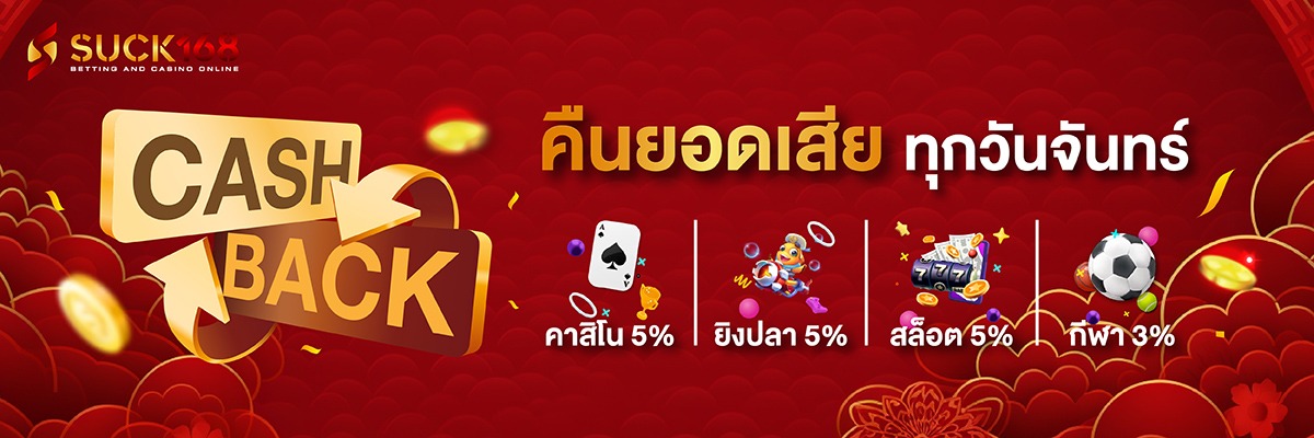 พูดถึงโบนัสต้อนรับที่คุณจะได้รับทันทีหลังจากสมัครสมาชิก SUCK168 มอบโบนัส 100% สำหรับการฝากเงินครั้งแรก นั่นหมายความว่าถ้าคุณฝากเงิน 1,000 บาท คุณจะได้เครดิตเพิ่มอีก 1,000 บาท รวมเป็น 2,000 บาทที่สามารถนำไปเดิมพันได้ทันที แต่นั่นยังไม่หมด เรายังมีโปรโมชั่นคืนยอดเสียที่จะช่วยบรรเทาความเสียหายในกรณีที่วันนั้นดวงไม่เป็นใจ